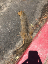 dead on monte vista ave. no obvious cause of death, though most likely died recently as there were as of yet no decomposers on the scene. Couldn’t help but noticing a serene look on its face. Rest in peace squirrel friend.