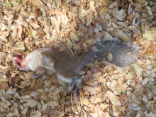 Spooked a turkey vulture while driving; this is what he was eating. Carcass was alongside a dirt road, so possibly roadkill.