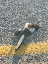 Cause of death unknown, though it was lying in the middle of the road.