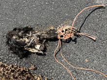 tissue sample sent to raodkillDNA.org; reported to local Animal Services as possible abuse. Not clear if collision-related.