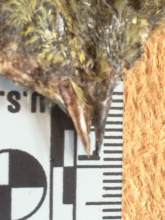 oc warbler from bill, wing, tarsi size and color; washing for better picts; flattened but skin feathers still present