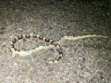 Roadkilled. When we saw it at 8:33pm is was 74 degrees air temperature wise at this location.