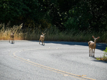 trying to cross Alma Bridge Rd. 1:2 close encounters of deer and cars today.