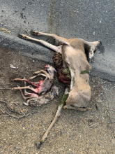 Two full term fawns expelled from mom after being hit by a car. Looked like someone moved mom off the road but the babies were still out there so I brought them off the highway to rest with their mother. I have a very tough stomach and routinely photograph roadkill for biology purposes but this was hard for me to see. Something desperately needs to be done about the issue with deer collisions in Auburn & Grass Valley.