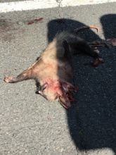 Roadkill, at first glance I thought it was a very large weasel or otter. Near the headwaters of Paulin Creek where it goes under a very busy roadway.
