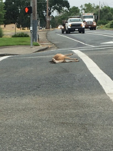 Unfortunate buck, facing eastbound Hwy 12 in crosswalk at Oakmont Drive, adult male with velvety horns. Hwy 12 is a very precipitous roadway with very few safe wildlife crossings due to heavy fast-moving traffic and solid fencelines. This guy was fully adult size, my guess would be at least 3 years old, heathy weight at the time (the deer here are fed by residents).