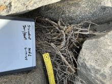 CLASSIC D. WOODRAT DEN ENTRANCE, LOT OF SCAT/TRACKS AROUND.