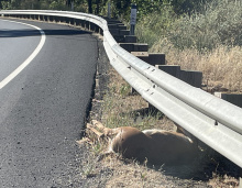 Steep embankment one side of road, guardrail on other